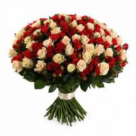 Высота 70 см, Диаметр 90-95 см, 101 одноголовая роза, 100 кустовых роз, лента