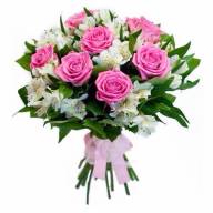 Нежные розы, дополненные снежно-белыми альстромериями – очень изысканная и красивая композиция, яркий пример грации и женственности. Такие букеты дарят людям, которых любят и понимают, к которым относятся с пониманием и особым трепетом.